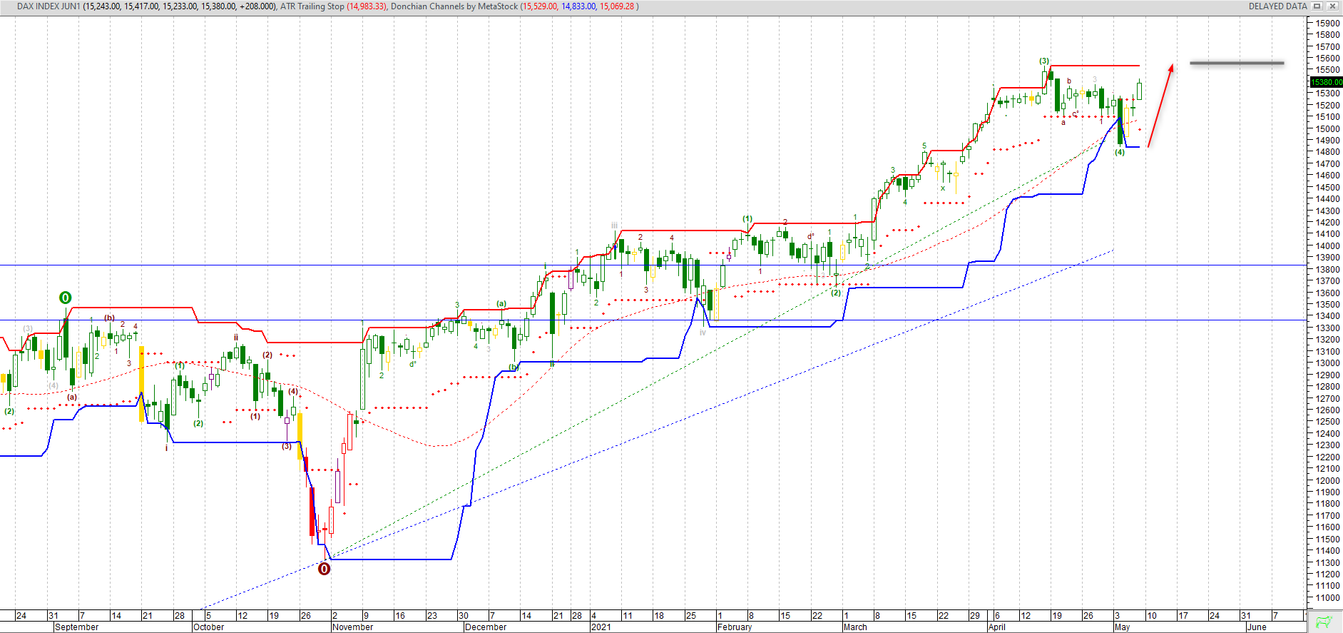Il DAX Future si ripropone brillantemente al rialzo, tentando il riattacco ai massimi assoluti, visti circa 100 punti sopra gli attuali livelli. Facciamo sempre notare che sul lato lungo del mercato c’è una linea di tendenza (visibile sul grafico) in corso dallo scorso novembre, che ha supportato fin qui il movimento rialzista e che trasmette sempre forte magnitudo alle quotazioni nelle fasi di validazione. Ovviamente, per chi opera in “swing trading”, questo livello si è proposto come catalist per un ripristino del mood rialzista, per cui il fatto che quota 15.250 sia stata convintamente superata pone le basi per un riattacco all’ultima resistenza su quota 15.500 e poi salire più in alto, in regime di autoalimentazione del trend, perché, come è noto, il DAX è indice che lavora bene in accelerazione seguente ai breakout. Guardando in avanti il DAX potrebbe spingere, rotta quota 15.500, fino a 15.900.