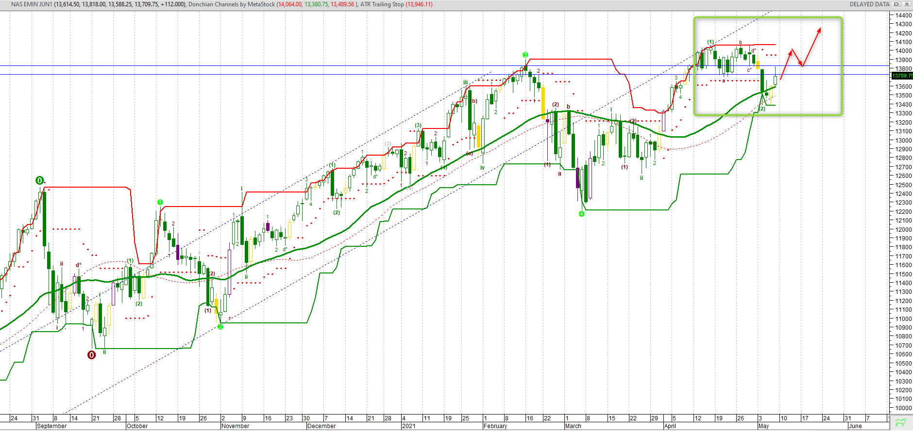 Continua il recupero del Nasdaq100 Future che, dopo aver attaccato positivamente quota 13,500, consolida sopra e punta a quota 14.000, dove incrocia un livello di resistenza tecnica. Tuttavia, nulla cambia comunque per la struttura tecnica che, come riportato nel report precedente, non si modifica la fasatura dei sistemi operativi che è letto in chiave ribassista, incoraggiando di fatto un’operatività allineata sul lato corto, nelle fasi di allungo del mercato. Unica considerazione positiva al momento è che la media a 34 giorni, che incrocia a 13,520 è stata recuperata. Un ritorno sotto questo livello porterebbe a ulteriori perdite per target a 13,315. Guardando invece in avanti, area 14,000-14,080, come su detto, assume un ruolo importante ai fini dell’inversione di polarità del mercato.