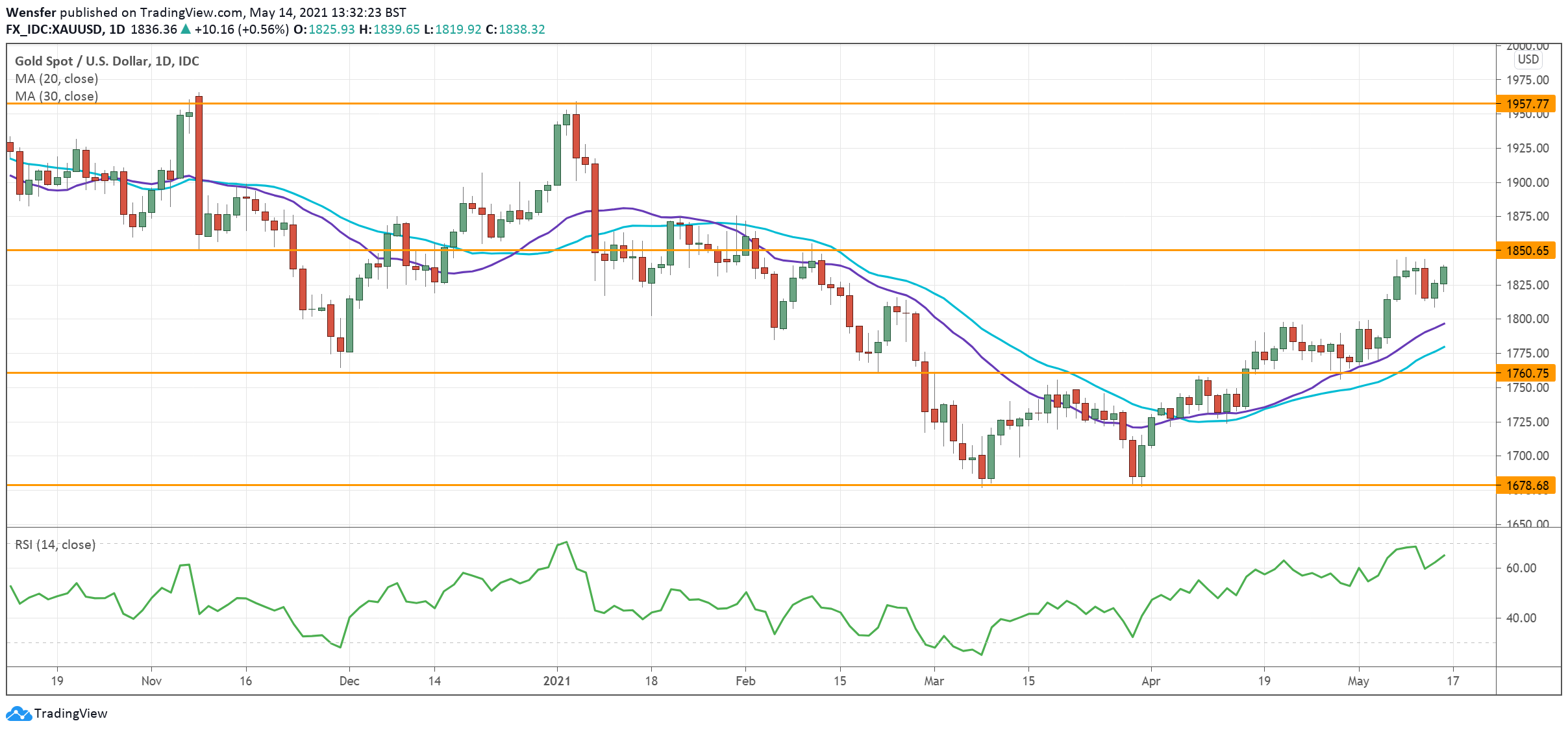 The price action has met some selling pressure at 1850. A bullish breakout could extend the recovery towards 1920.