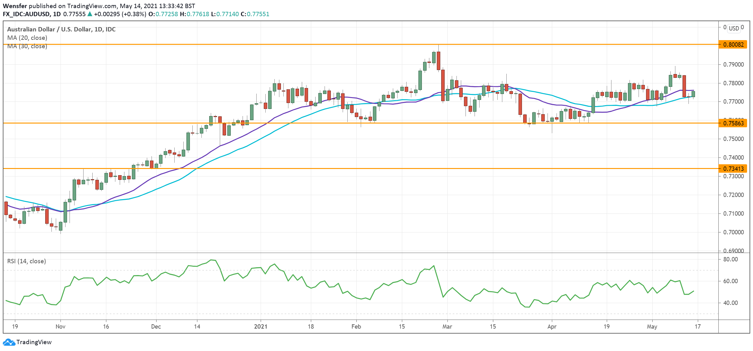 The lower band of the consolidation (0.7580) is a critical level to maintain optimism. The psychological level of 0.8000 remains a major hurdle.