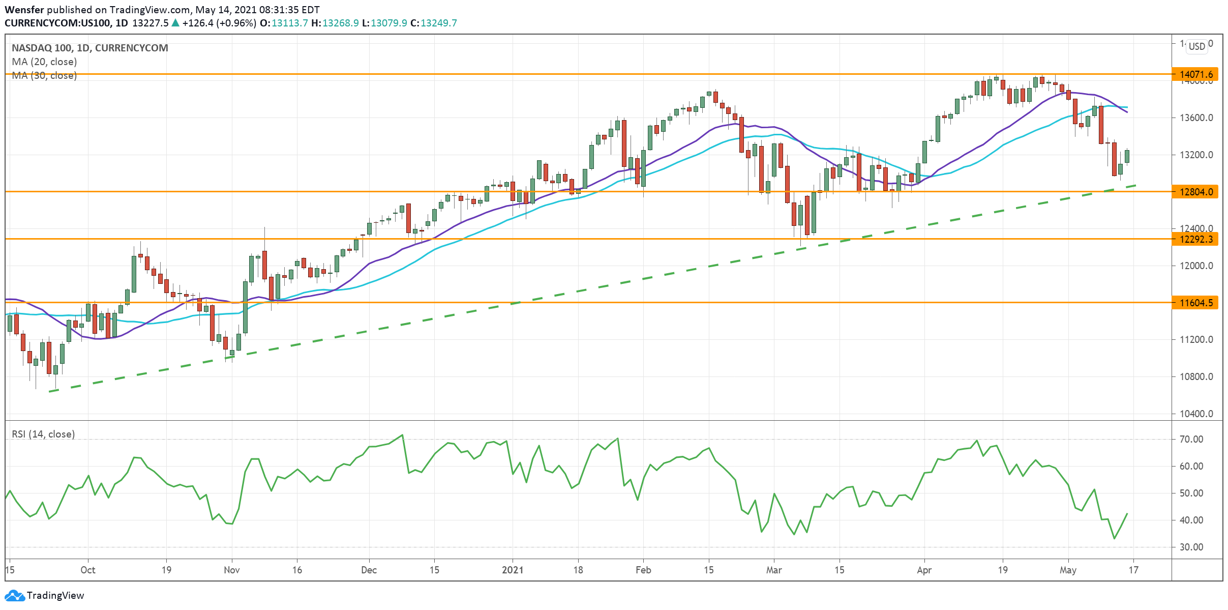 Sluggish numbers from April’s nonfarm payrolls could be the counterargument for tapering. The NASDAQ is testing the demand zone above 12800.
