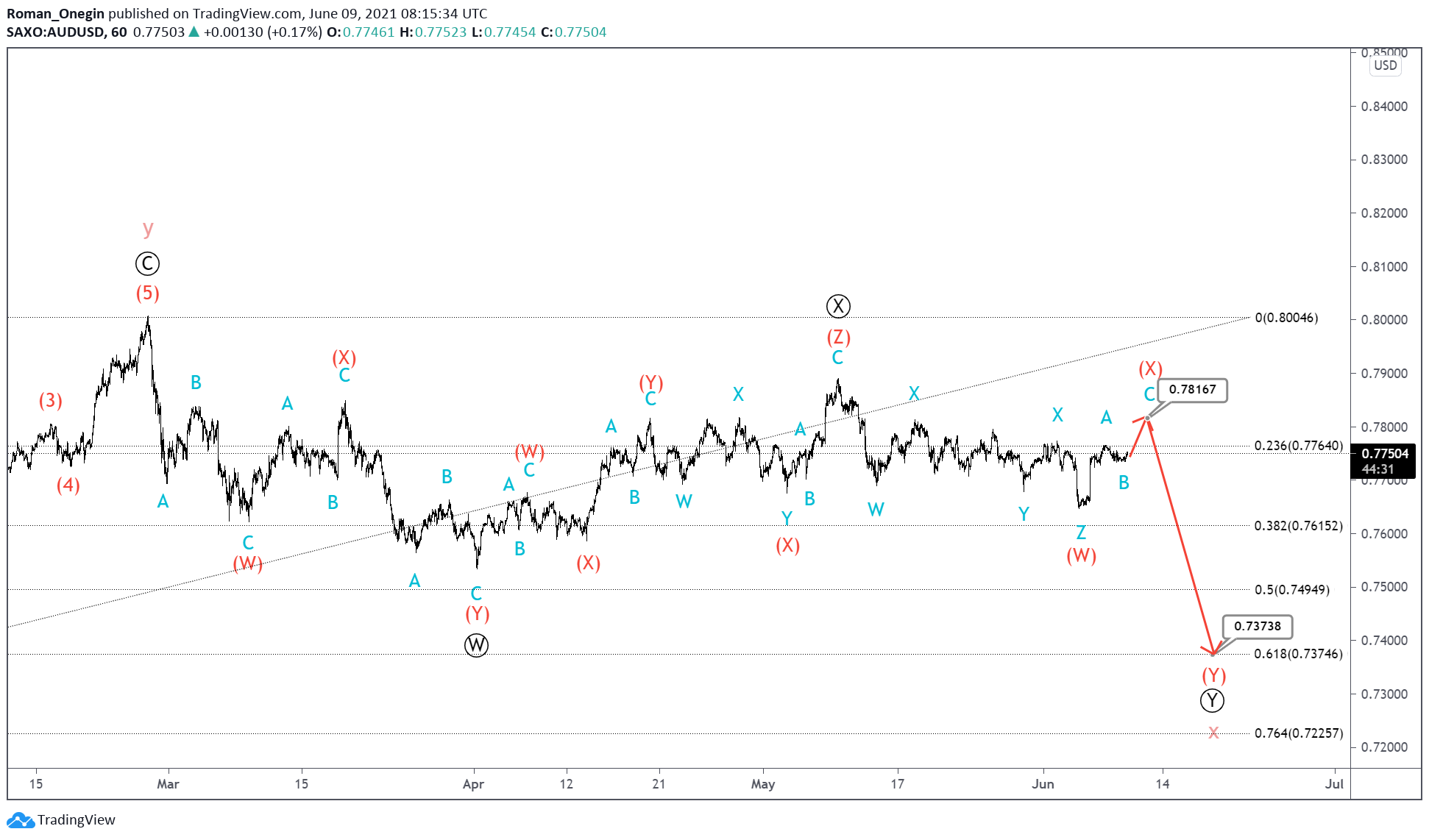 Then, after the end of wave (X), the price will continue to fall within the actionary wave (Y) to 0.737. At that level, cycle wave x will be at 61.8% of wave y.