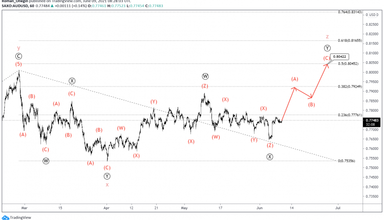 In the near future, we could see the intervening wave (X) coming to an end near the 0.781 area. At that level, it will be at 76.4% of wave (W).