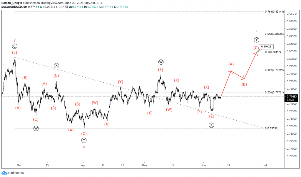 In the near future, we could see the intervening wave (X) coming to an end near the 0.781 area. At that level, it will be at 76.4% of wave (W).