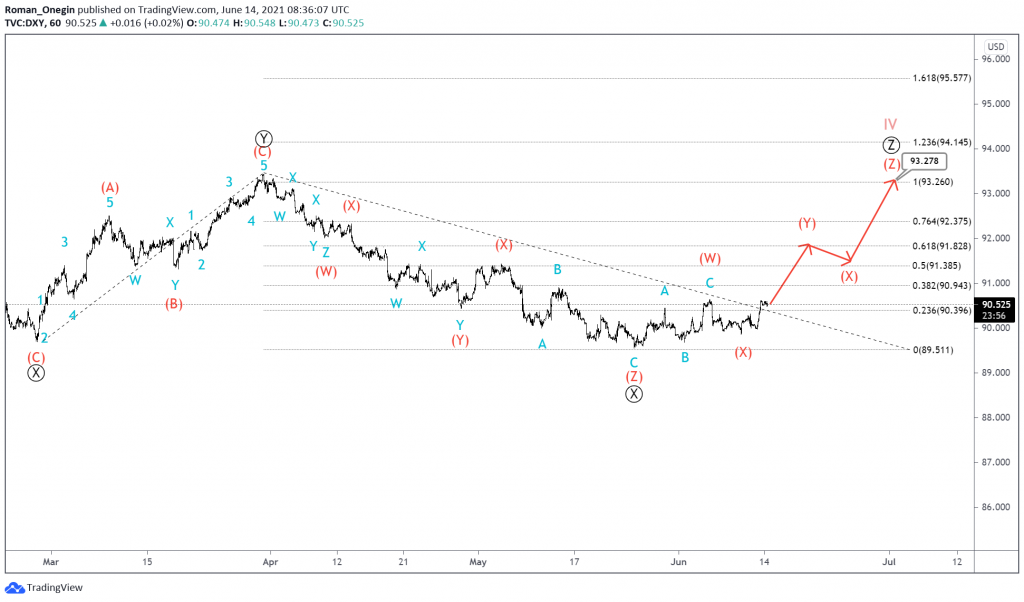 The current DXY formation hints at the construction of a corrective wave IV of the cycle degree.