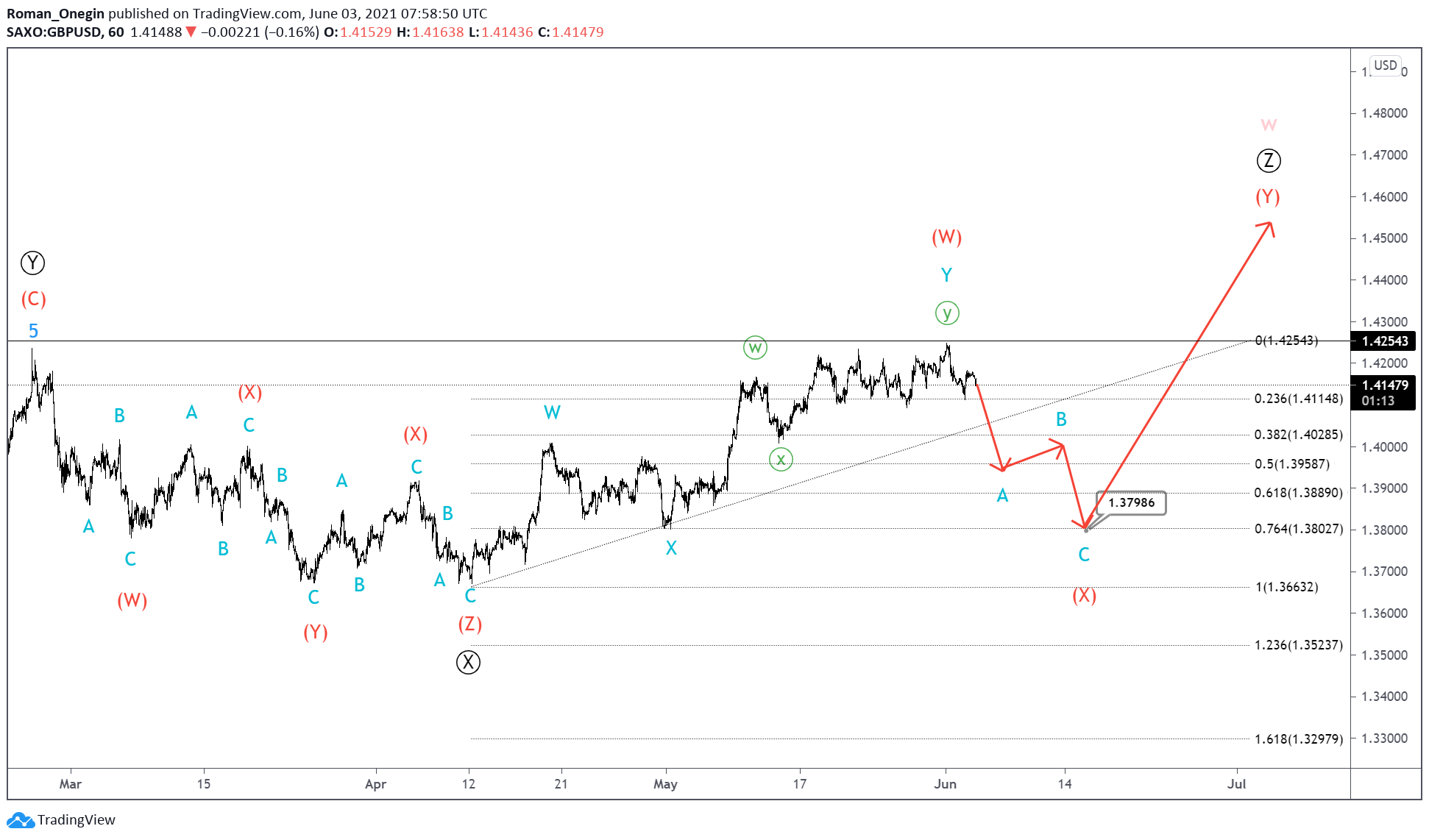 Bulls can then lead the market in a wave (Y) above the previous high above 1.425.