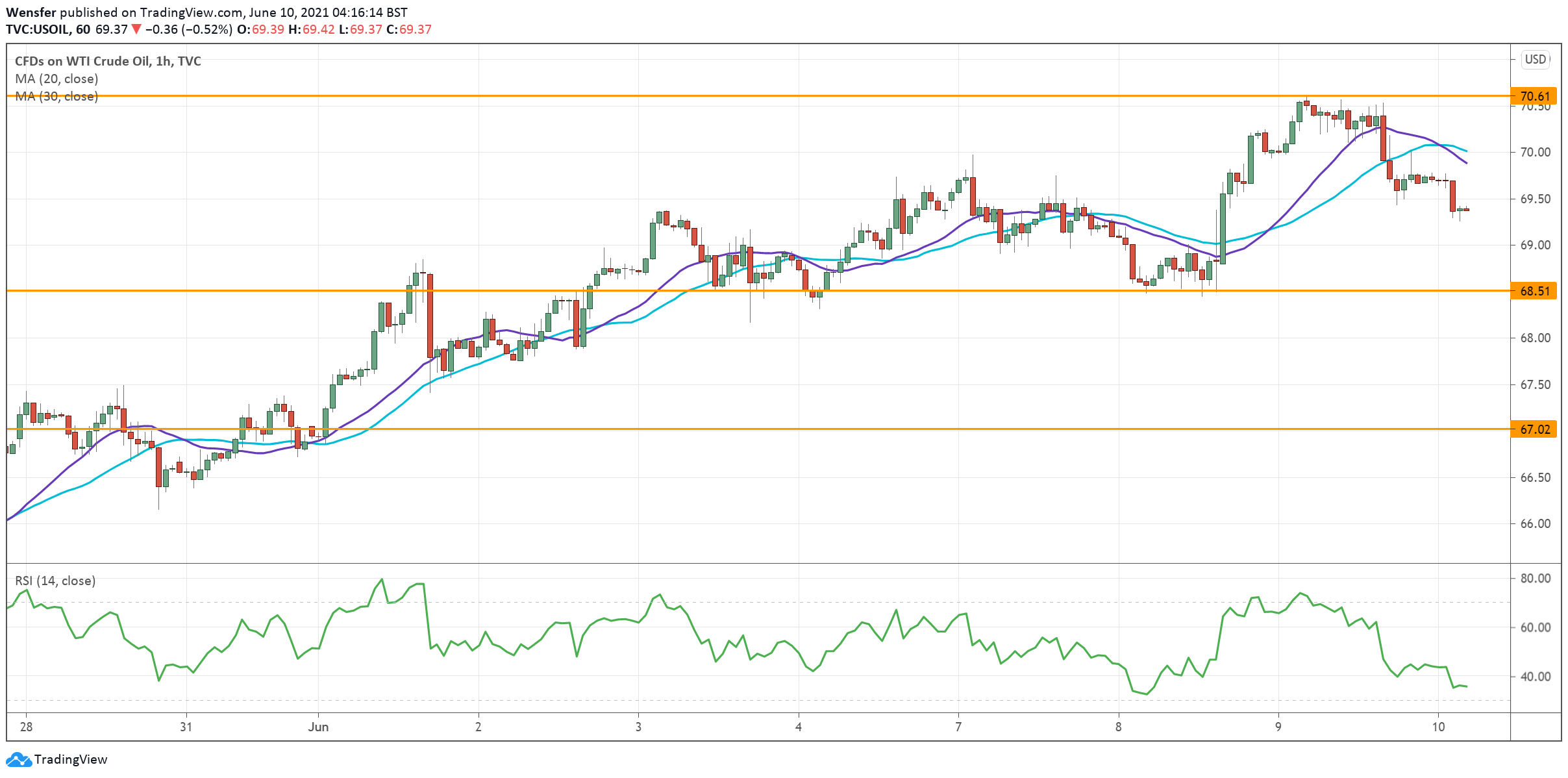 The 20-hour moving average would cross above the 30-hour one when the rally picks up steam again. Then 72.40 would be the next target.