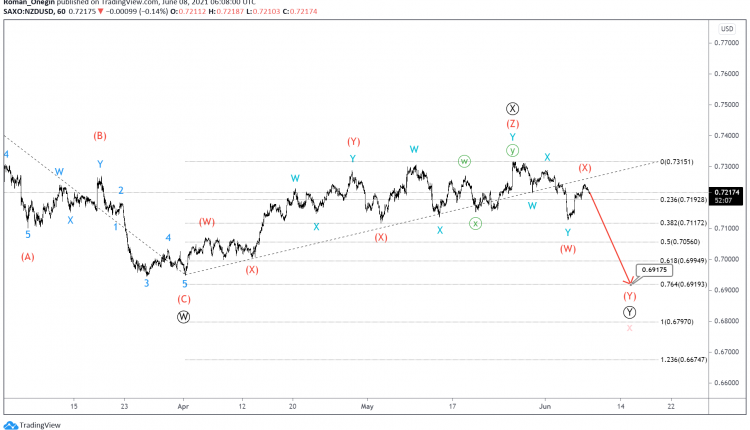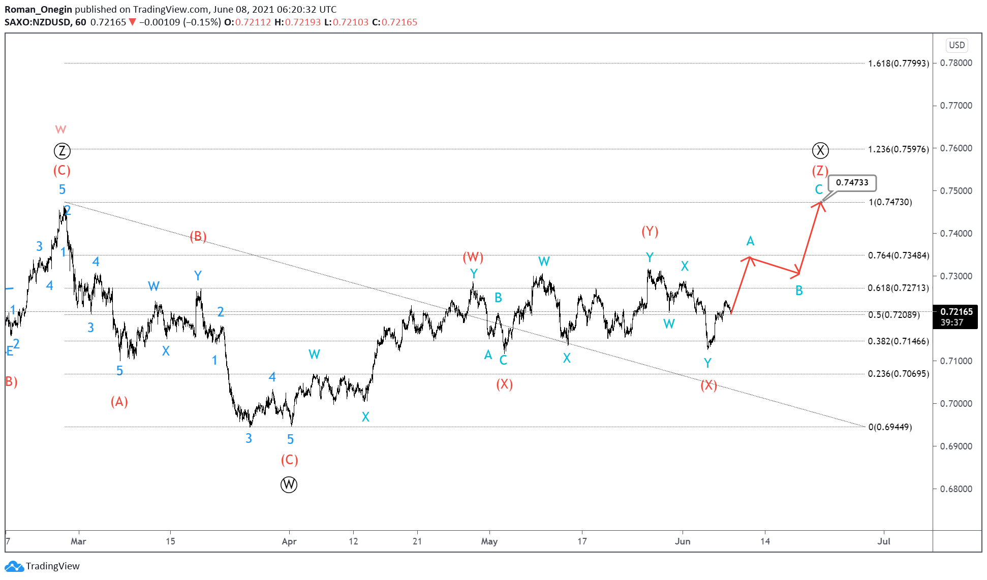 The current NZDUSD structure hints at the formation of a cycle intervening wave x. This is part of a large double zigzag.