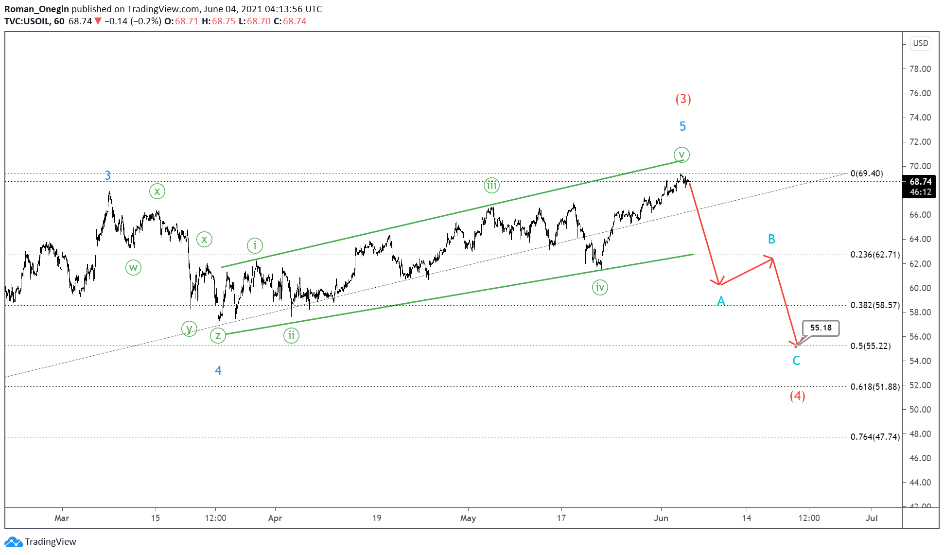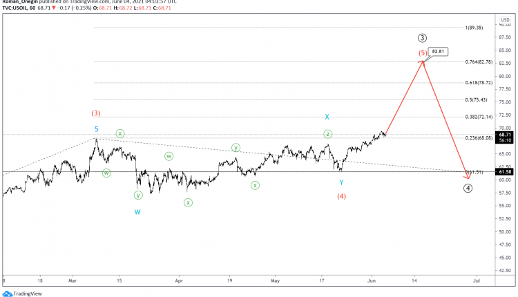 USOIL is currently forming a bullish impulse that consists of primary sub-waves.