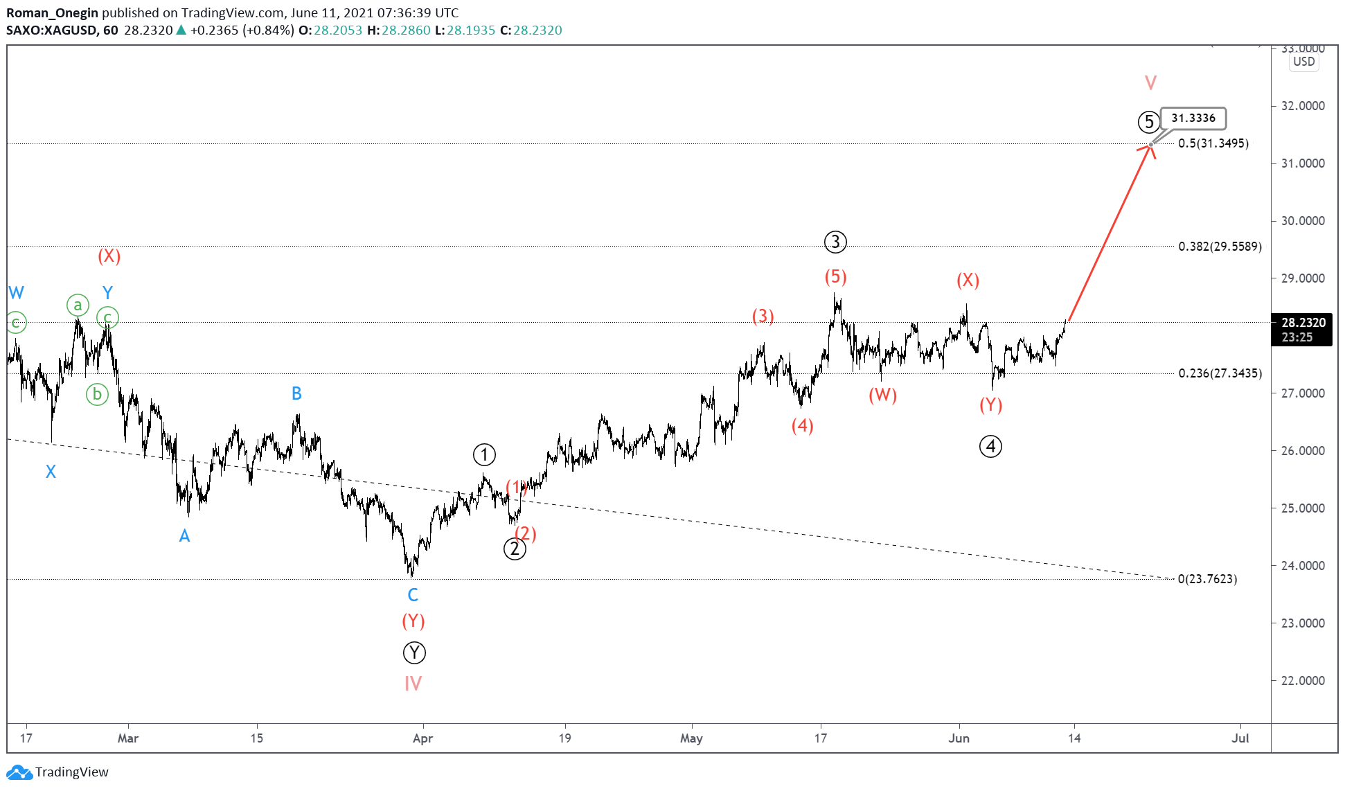 If this is the case, then in the near future the price growth could continue in the primary fifth wave to 31.33. At that level, cycle degree wave V will be at 50% of impulse III.