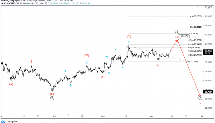 It is likely that the development of this pattern is close to the end. In the short term, prices could rise to 29.38 in the wave (Z). At that level, it will be at 76.4% of wave (Y).