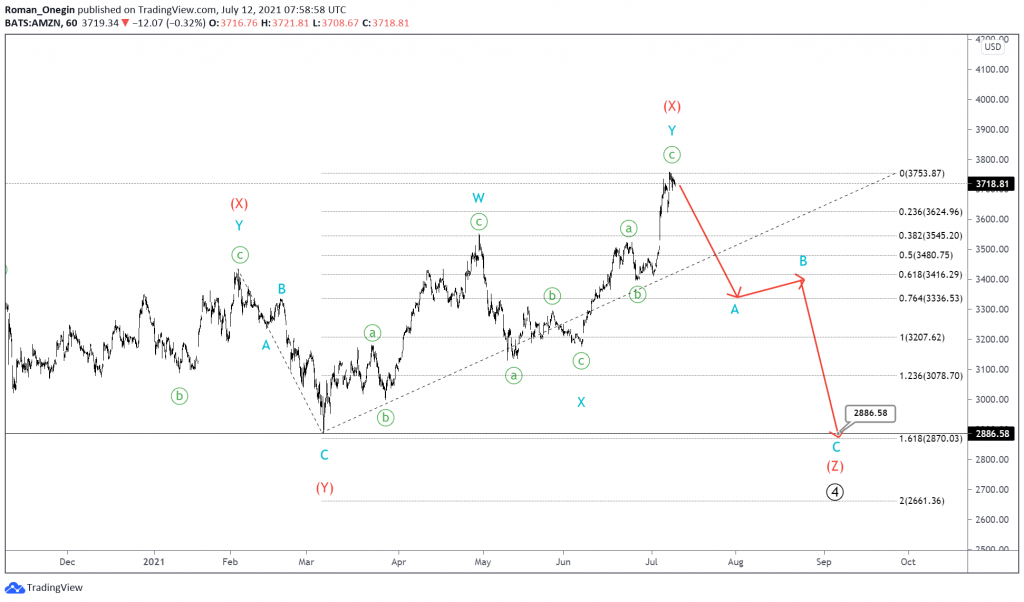 AMZN shares seem to be forming a bullish impulse, which includes the formation of a large 4th wave.