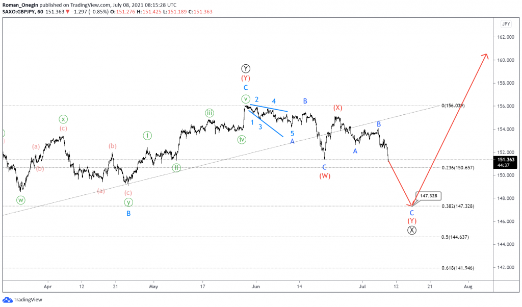 Prices could fall in the impulse wave C to the level of 147.32, at which, the primary wave Ⓧ will be at 38.2% of wave Ⓨ.