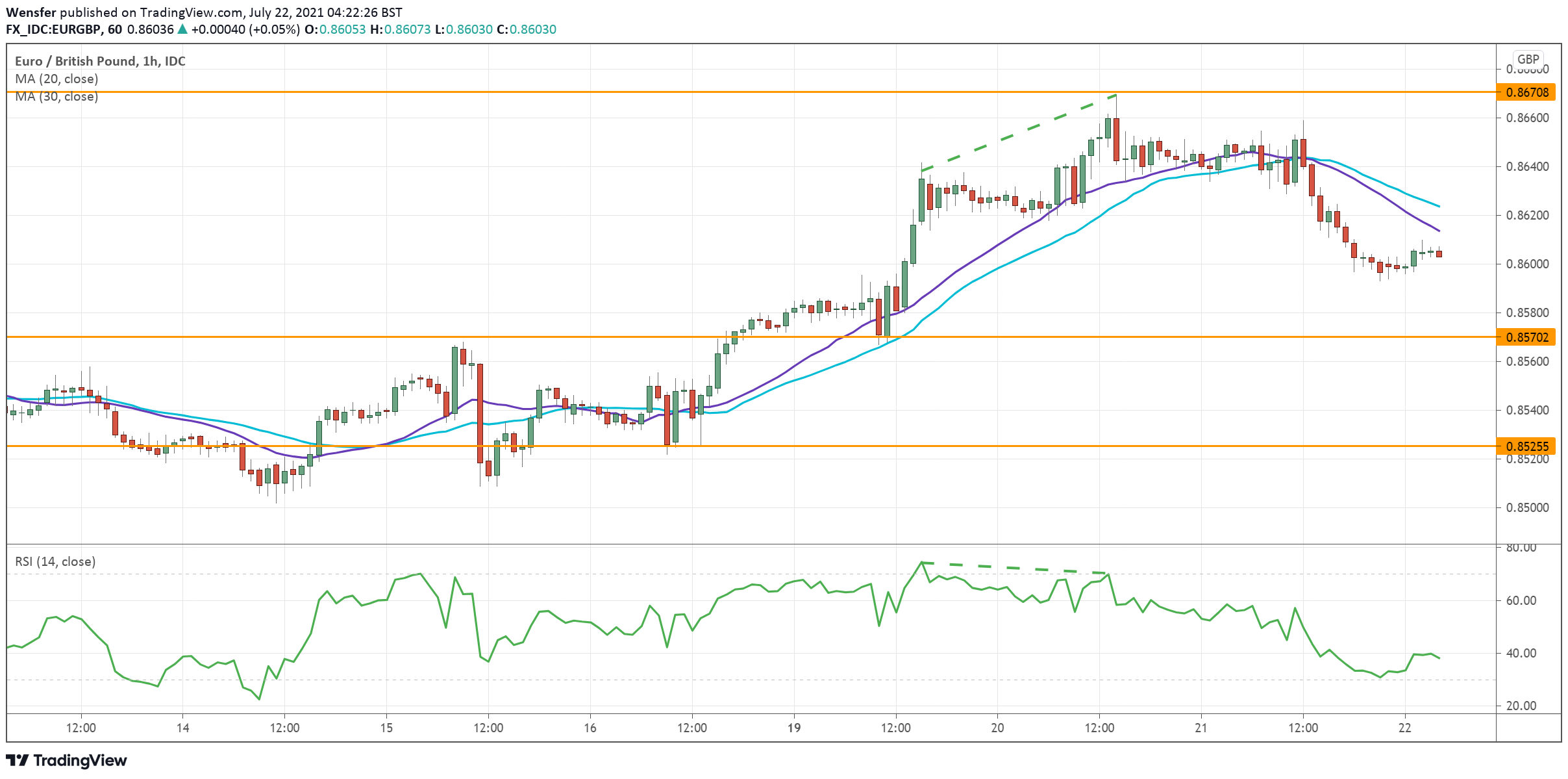 The pair saw some selling pressure near 0.8670 as an RSI divergence was showing signs of exhaustion. A temporary pullback is necessary to let the bulls catch their breath.