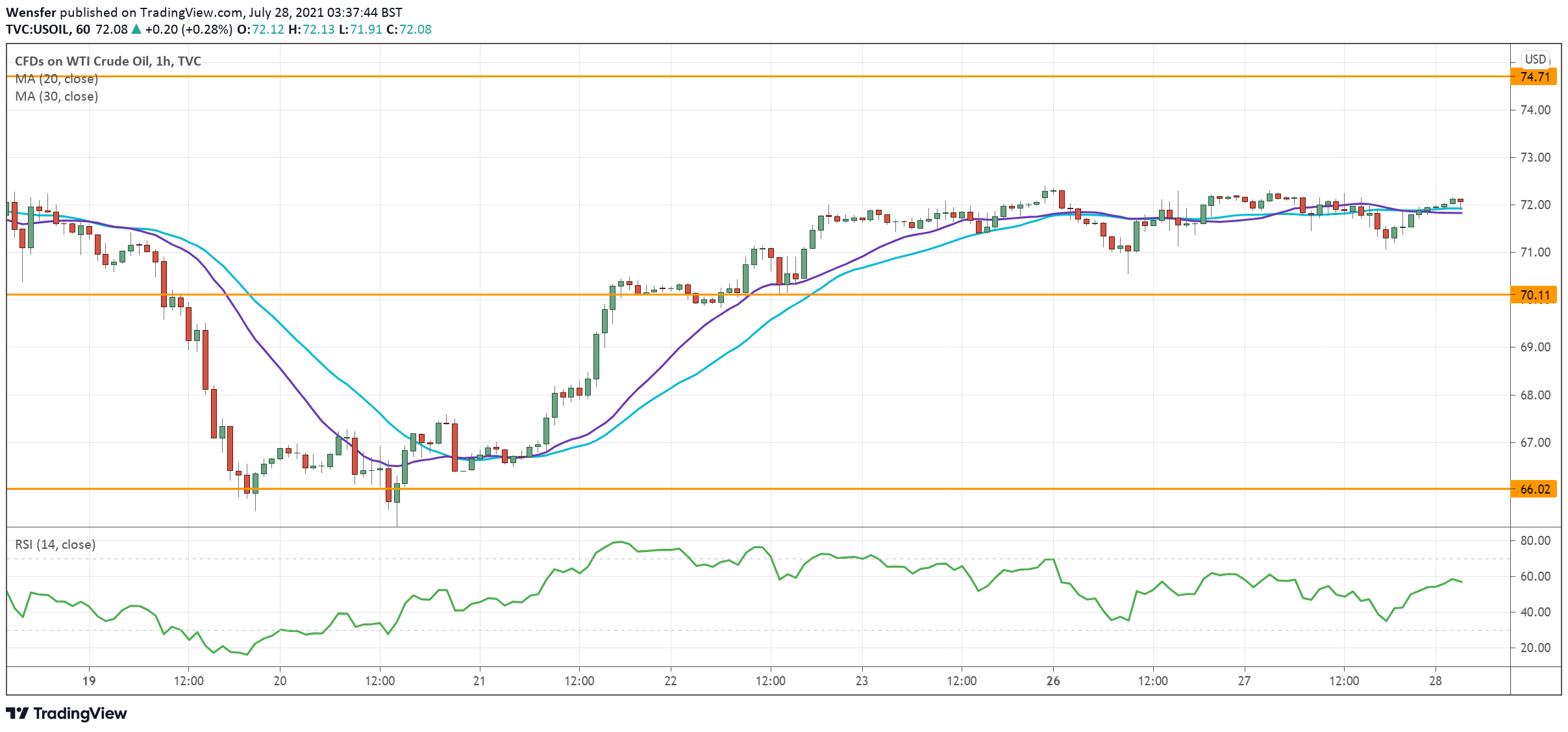 WTI’s swift recovery above 71.10 is an encouraging sign that buyers are still hanging around. Following the breakout, 70.10 has established itself as a fresh support.