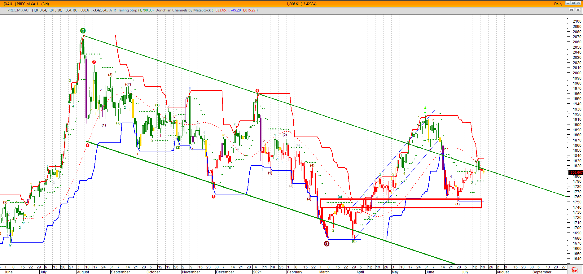 Su proiezioni di breve termine il GOLD è approdato sull’importante supporto visto a 1,750, pressato dall’azione dei ribassisti a fronte di una evidente logica intermarket “comandata” dal dollaro. In sintesi, il trend di breve dell’ORO ha trovato giustificazione nelle tensioni assunte sul fronte dei tassi a breve in aumento, forzando il dollaro al rialzo per compensare le tensioni che stavano impattando sui Bond USA. Quota 1,750, ovviamente, è una cifra rotonda e psicologicamente significativa. Il successivo rimbalzo ha riconfigurato un trend positivo di breve termine con nuova resistenza di transizione a quota 1,835. Se il GOLD dovesse attaccarla e romperla, il segnale che entrerebbe, rafforzerebbe la situazione tecnica definendo il target in upside a quota 1,875.