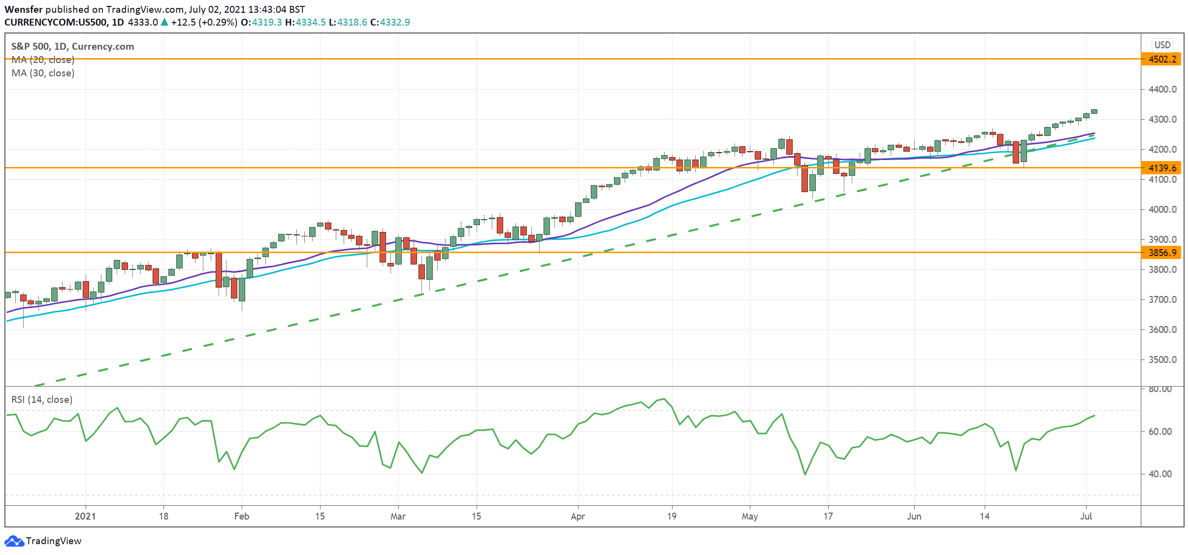 The uptrend is heading towards 4500 with 4140 as support.