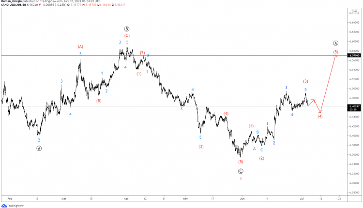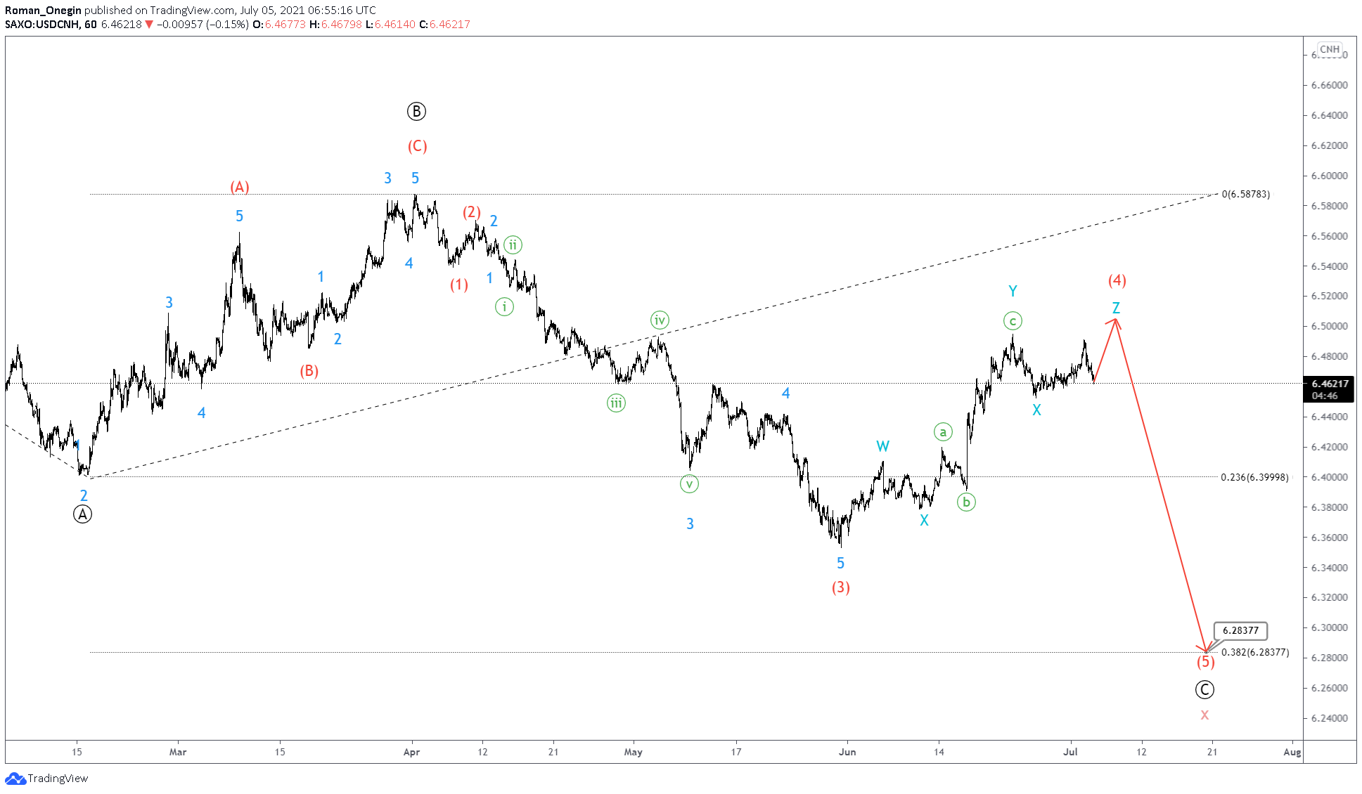 The current USDCNH structure indicates that the market has completed an intervening wave x of a cycle degree.
