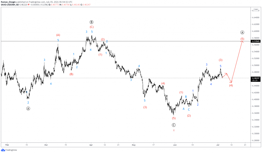 The current USDCNH structure indicates that the market has completed an intervening wave x of a cycle degree.