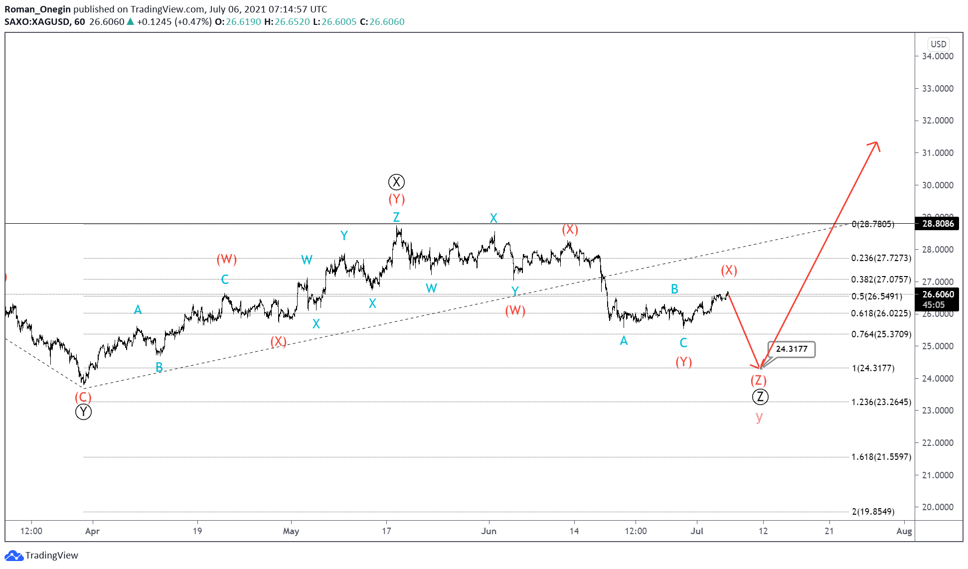 After wave y fully completes its pattern, the development of a new bullish trend above the maximum of 28.80 is likely.
