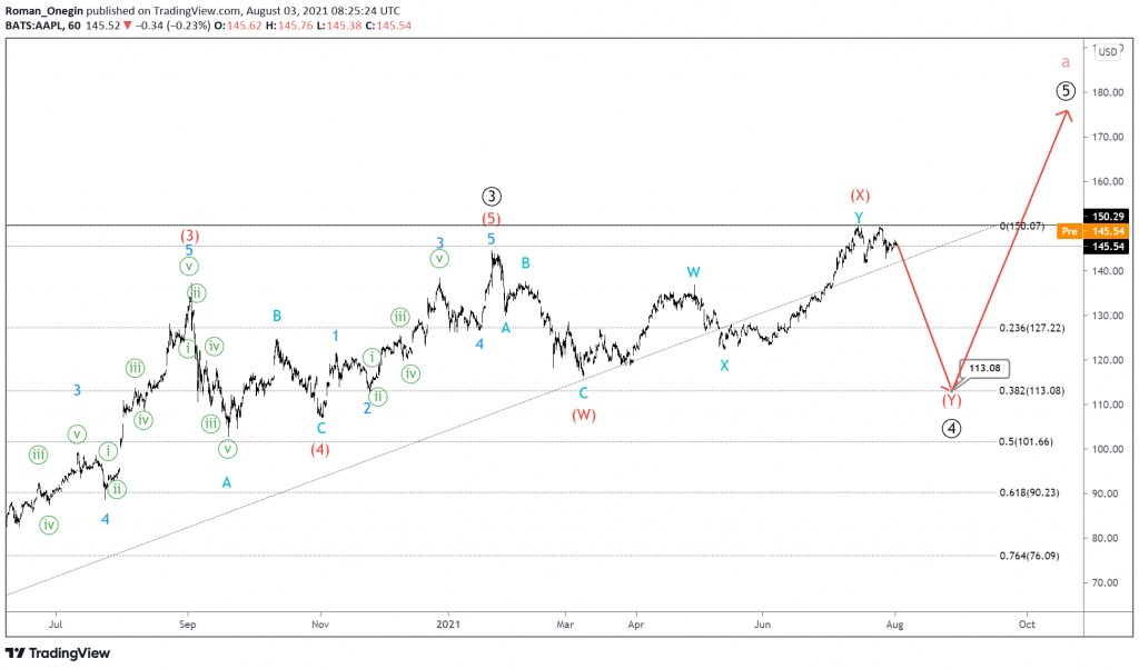 The APPLE structure is forming a large wave a of a cycle degree, which takes the form of an impulse, consisting of sub-waves ①-②-③-④-⑤ of the primary degree.