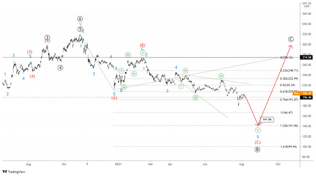 If our assumption is correct, then in the next coming trading weeks, an upward move is likely in a new primary wave Ⓒ above the maximum of 274.10.