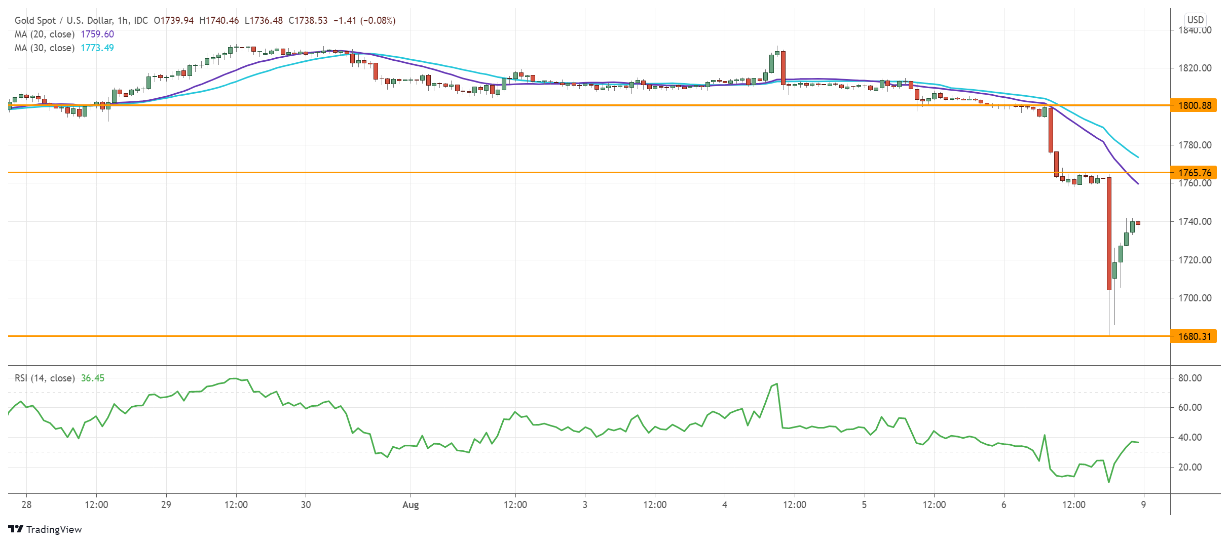 The price has bounced off the critical support of 1680 from last March, while an oversold RSI recovers into the neutral area. Its breach could exacerbate the sell-off towards 1600.