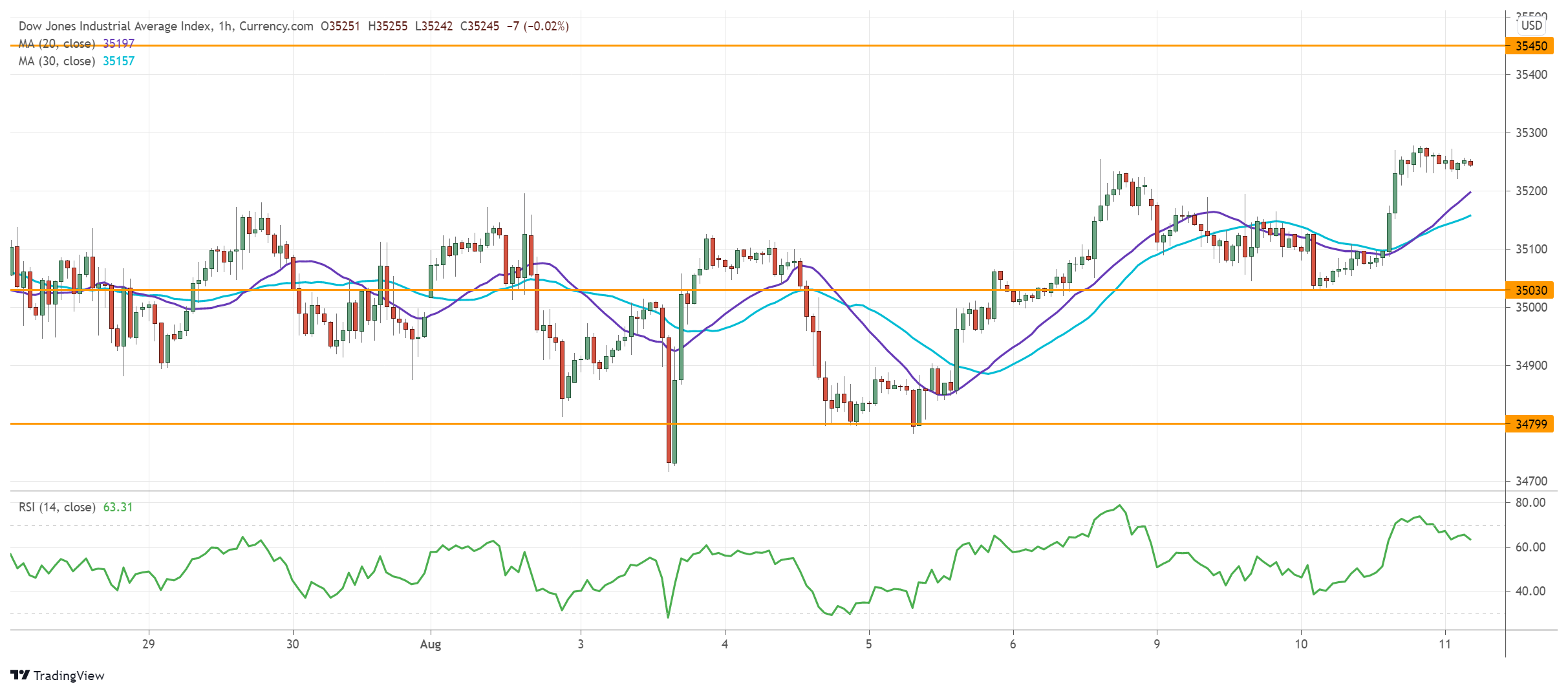 The Dow Jones 30 rose to a record high after the US Senate passed the $1 trillion infrastructure bill. The initial surge above 35100 was a sign of strong buying interest.