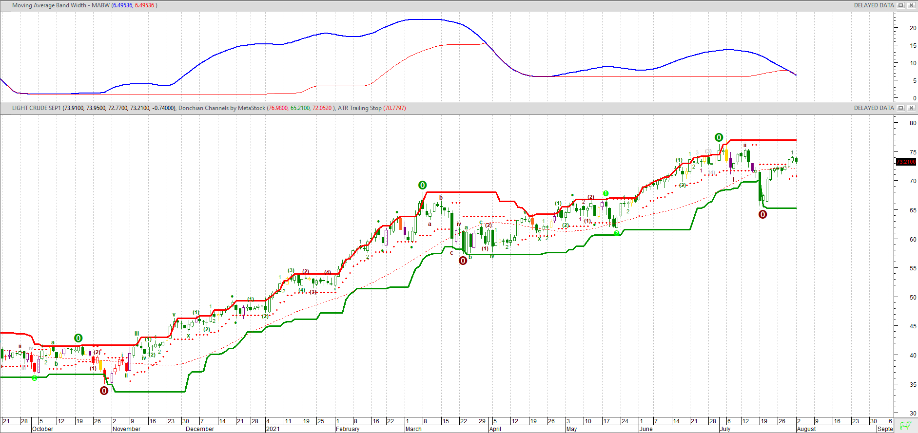 Il quadro tecnico generale ha evidenziato per il Crude Oil una sostanziale difficoltà a proseguire oltre quota 75-77 dollari, area di resistenza validata dopo un prolungato movimento rialzista, innescato sui minimi dell’aprile scorso e modellando una tendenza rialzista di carattere impulsivo piuttosto articolata. Lo scenario in prospettiva è visto in fase di stabilizzazione, confermata dalla validazione dei supporti di transizione in area 67, approcciati di recente, definendo peraltro i connotati tecnici per una operatività di tipo Buy on DIP per essere stata validata in eccesso di BID, fornendo un importante segnale di RIACQUISTO. Il primo supporto di contenimento, desunto dalla volatilità, è stimato proprio in area 66. Da seguire la componente stagionale che dall’inizio di settembre è spesso connotata positivamente.