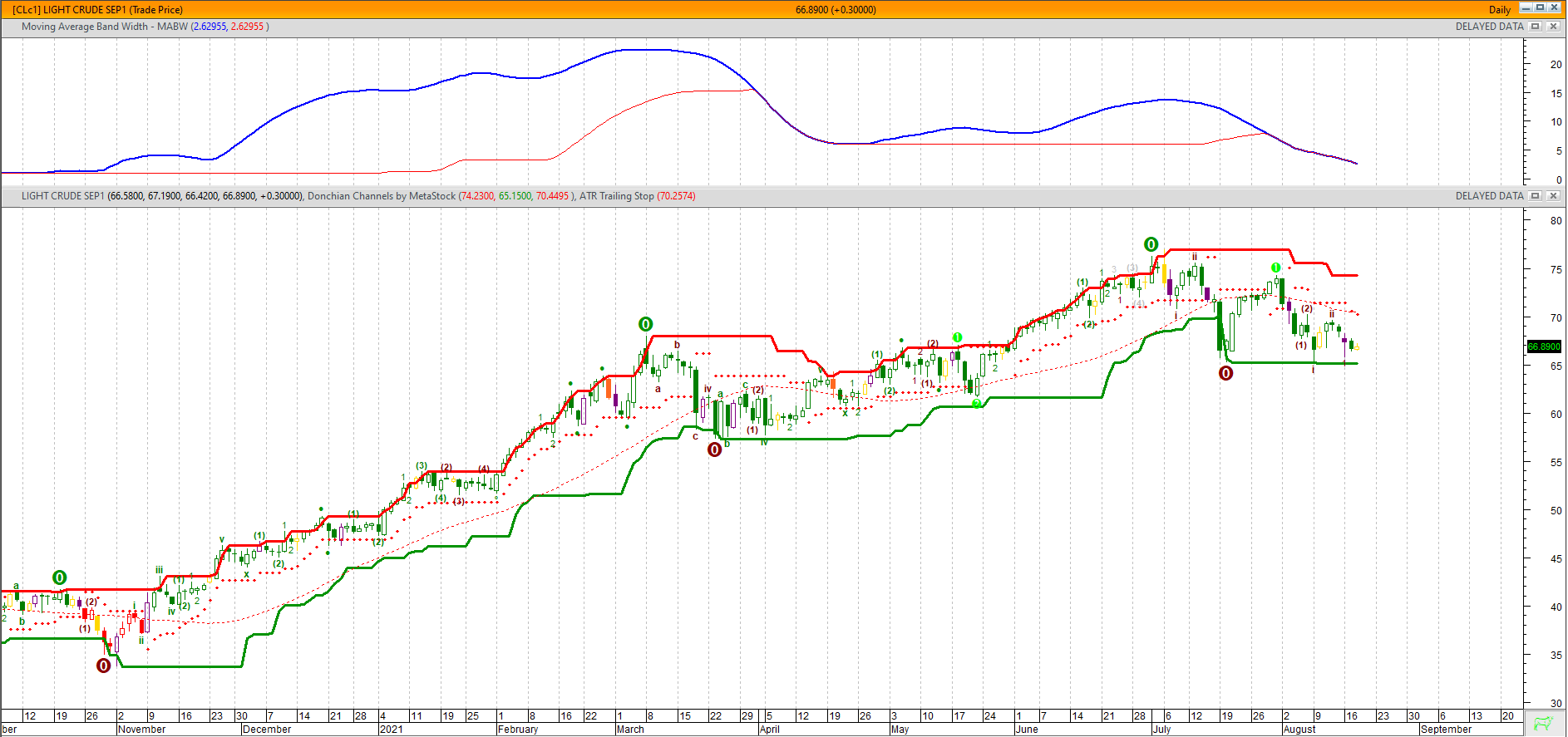 Il quadro tecnico generale ha evidenziato per il Crude Oil una sostanziale difficoltà a proseguire oltre quota 75-77 dollari, area di resistenza validata dopo un prolungato movimento rialzista, innescato sui minimi dell’aprile scorso e modellando una tendenza rialzista di carattere impulsivo piuttosto articolata. Lo scenario in prospettiva è visto in fase di stabilizzazione, confermata dalla validazione dei supporti di transizione in area 67, approcciati di recente, definendo peraltro i connotati tecnici per una operatività di tipo Buy on DIP per essere stata validata in eccesso di BID, fornendo un importante segnale di RIACQUISTO. Il primo supporto di contenimento, desunto dalla volatilità, è stimato proprio in area 66. Da seguire la componente stagionale che dall’inizio di settembre è spesso connotata positivamente.