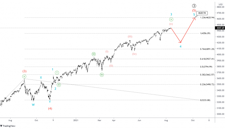 SPX500 seems to be forming a large bullish impulse, which consists of primary sub-waves.