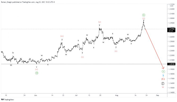 The last intermediate wave (C) in the form of a simple impulse is currently being formed as part of the sub-wave Ⓩ. The minute fourth correction in the form of a minuette double zigzag has come to an end, this is a signal for a decline in the minute fifth wave.