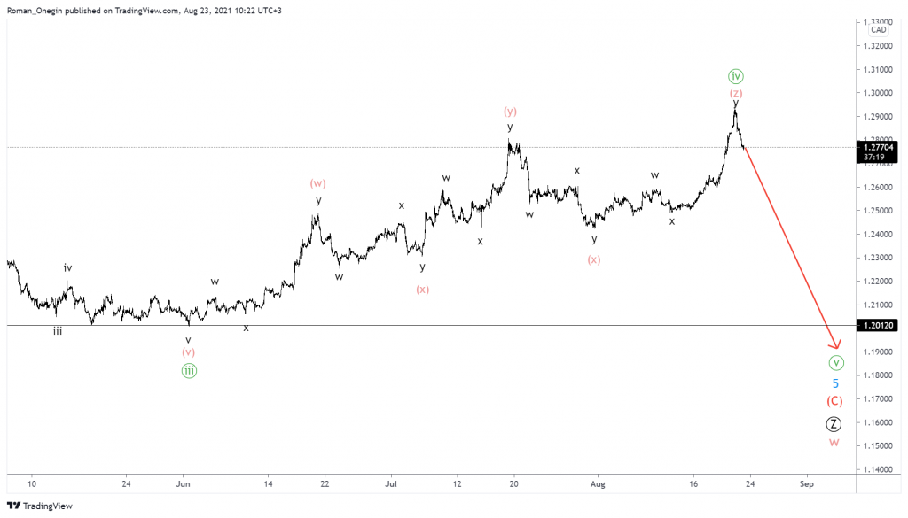 The USDCAD pair shows the initial part of a double zigzag of a cycle degree.