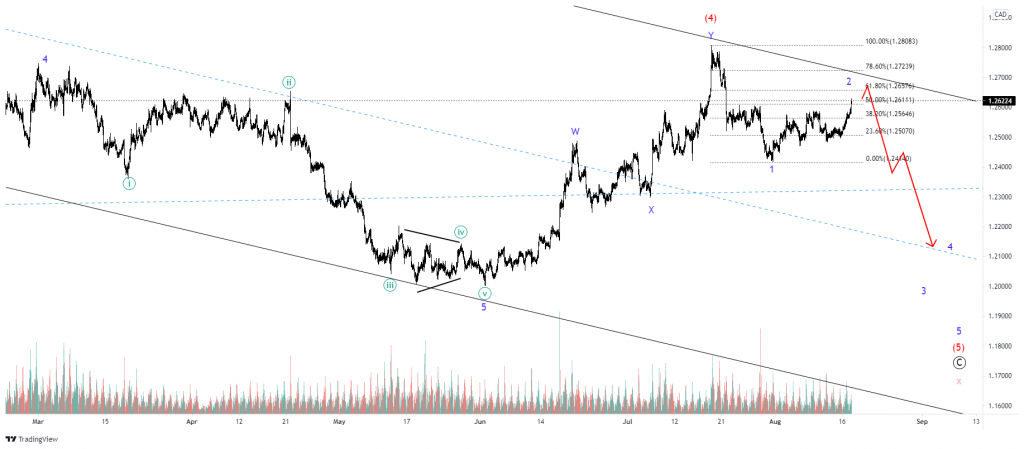 The medium-term structure could complete cycle wave x and reverse towards the $1.45 level in the long term. But for now, it hints at a recent completion of wave (4) of Ⓒ.