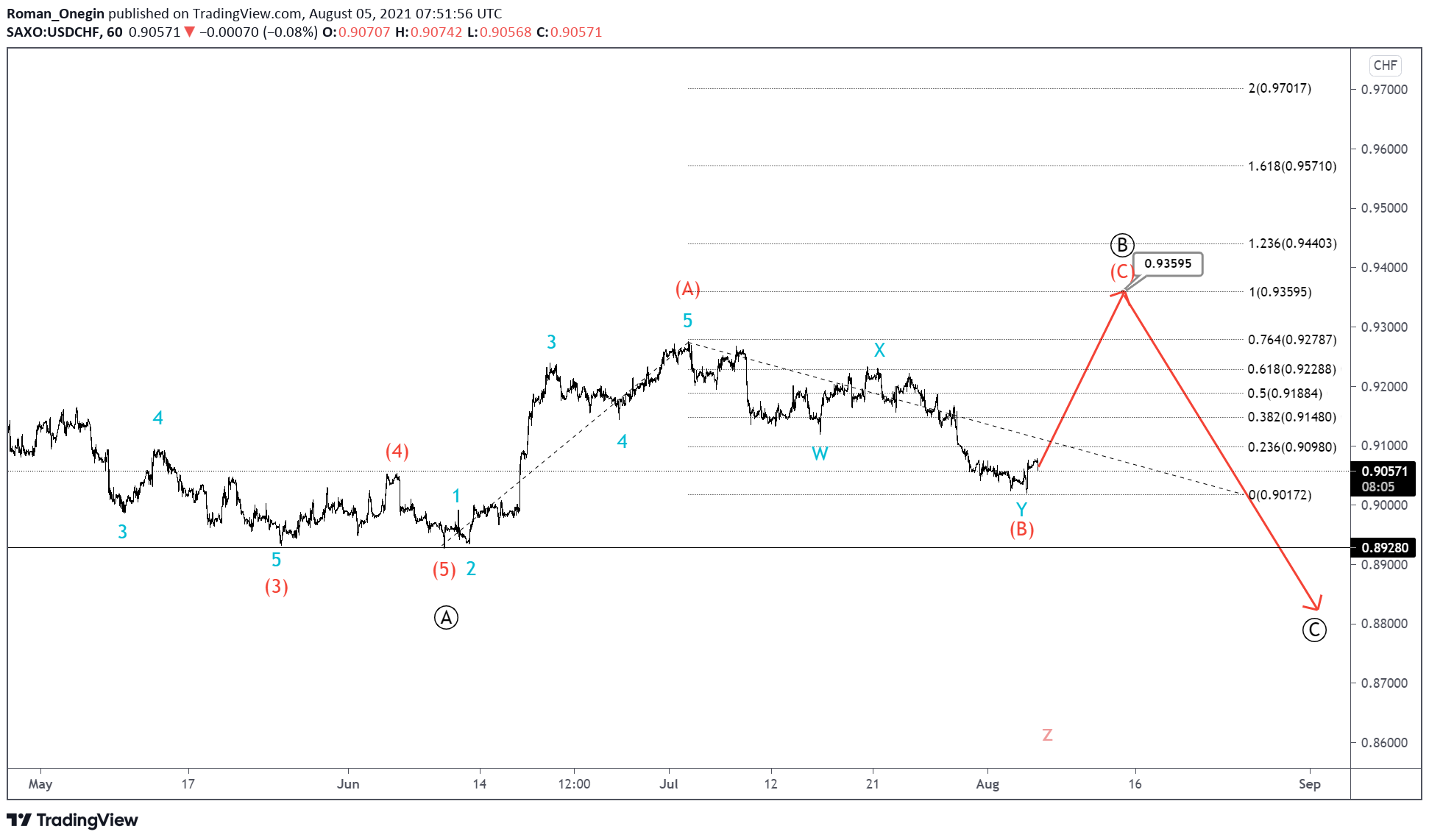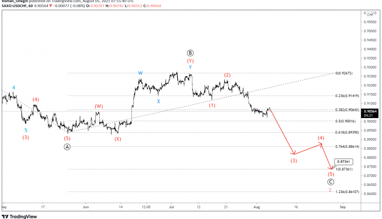 The USDCHF pair seems to be forming a large cycle triple zigzag, with the final wave z currently under development.