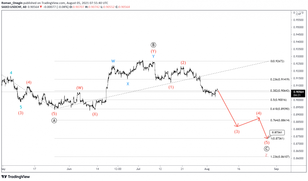 The USDCHF pair seems to be forming a large cycle triple zigzag, with the final wave z currently under development.