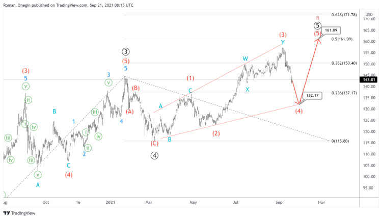 Wave (5) can reach the level of 161.09, where primary wave ⑤ will be at 50% of primary impulse ③.