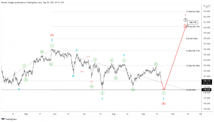 In the short term, it is likely that the price could decline in the minor impulse wave C towards 146.49. At that level, intermediate sub-waves (Y) and (Z) will be equal.
