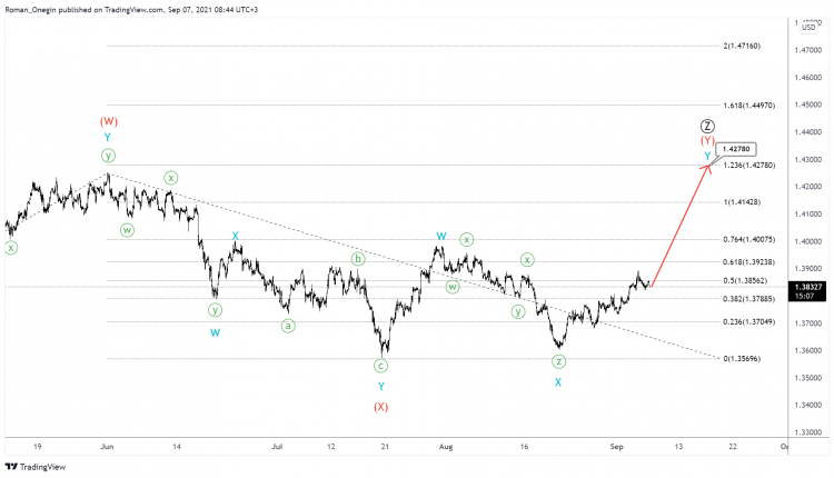 GBPUSD seems to be forming a triple zigzag consisting of primary sub-waves Ⓦ-Ⓧ-Ⓨ-Ⓧ-Ⓩ.
