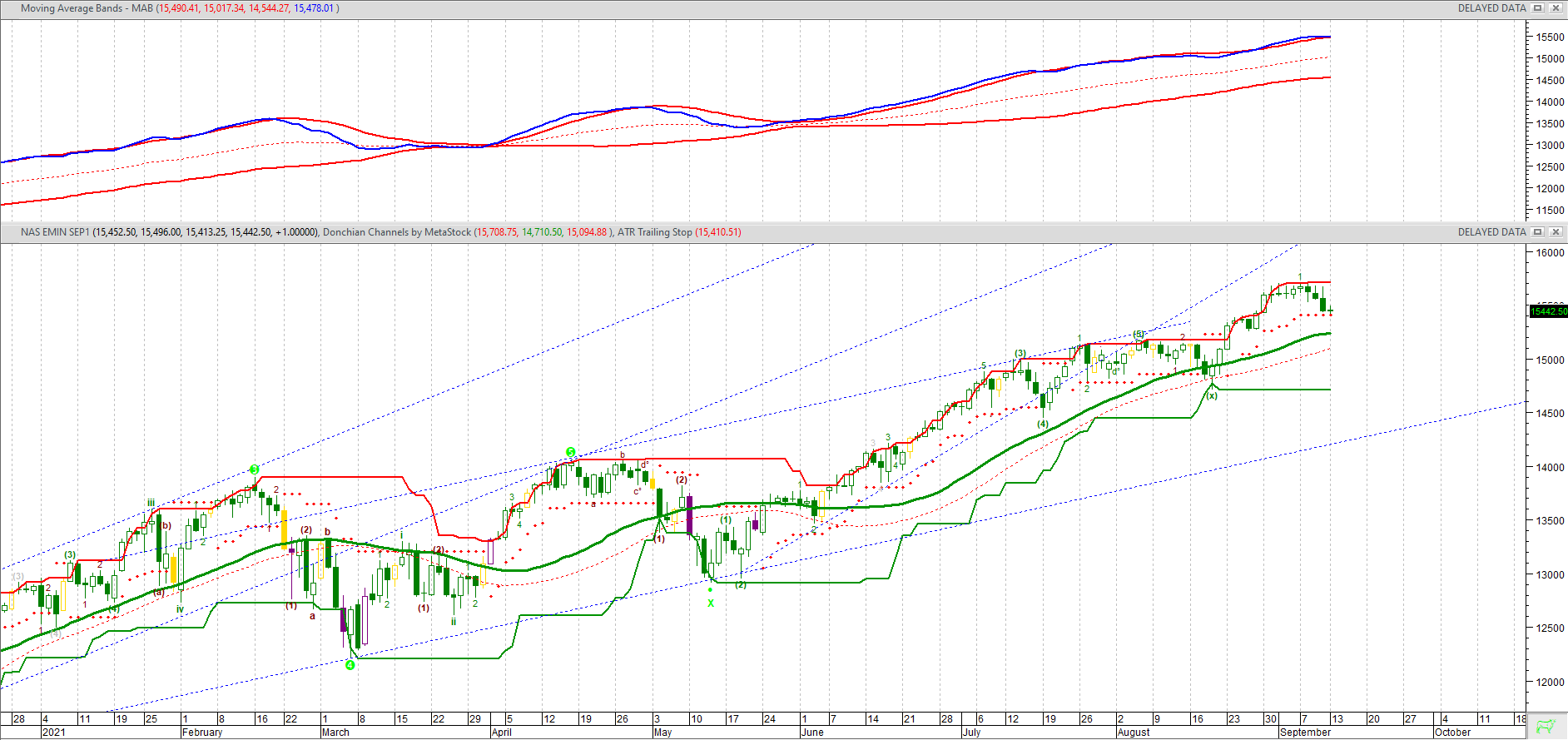 Il Nasdaq 100 future continua a mantenere la sua posizione e, sebbene questa possa cambiare repentinamente per le condizioni di relativo eccesso mostrate dai principali indicatori di momentum, è considerata la più ideale delle possibilità per i rialzisti. Nella peggiore delle ipotesi l’indice di riferimento dovrebbe mantenere una connotazione di sostanziale lateralità, con focus su un eventuale salto al di sopra della linea di tendenza rialzista che si estende da oltre un anno. A parità di condizione, cioè senza l’impatto di nuove variabili esterne alla struttura, un acuirsi delle vendite sugli attuali livelli andrebbe riferita a quota 15.239, dove incrociano più riferimenti di tipo spazio-puntale, che sostengono strutturalmente il rialzo dal maggio scorso. Al rialzo, invece, la resistenza di contenimento più immediata è sui massimi storici a quota 15.715.