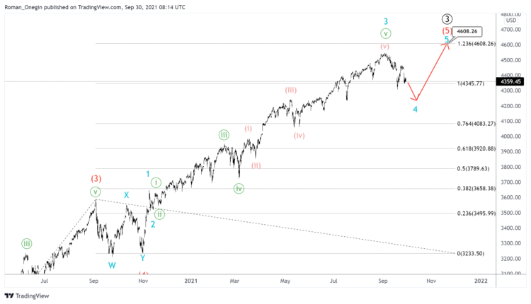 In the near future, the price could fall slightly in the minor wave 4, then the bulls may send the market to 4608.26. At that level, intermediate wave (5) will be at the 123.6% Fibonacci extension of wave (3).