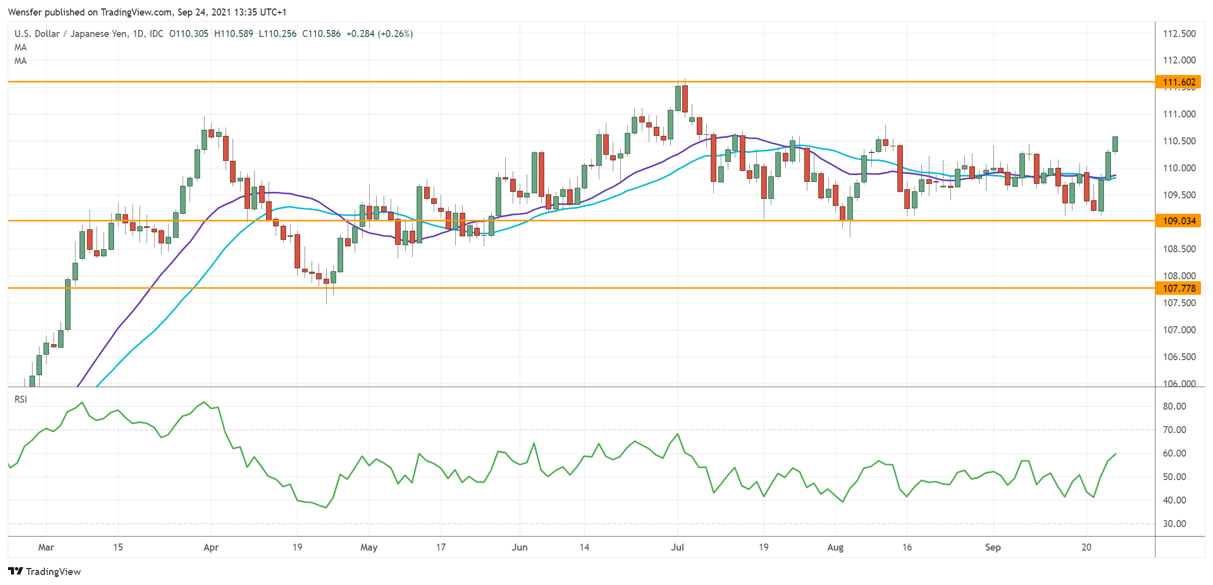 The pair has bounced off the key support at 109.00. A close above 111.60 would send the dollar to 112.40.