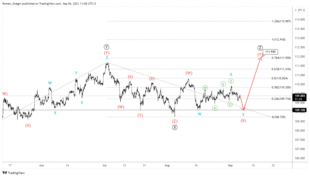 Once it forms, prices could rise in the final intermediate wave (Y) near 111.93. At this level, the primary wave Ⓩ will be at the 76.4% extension of wave Ⓨ.