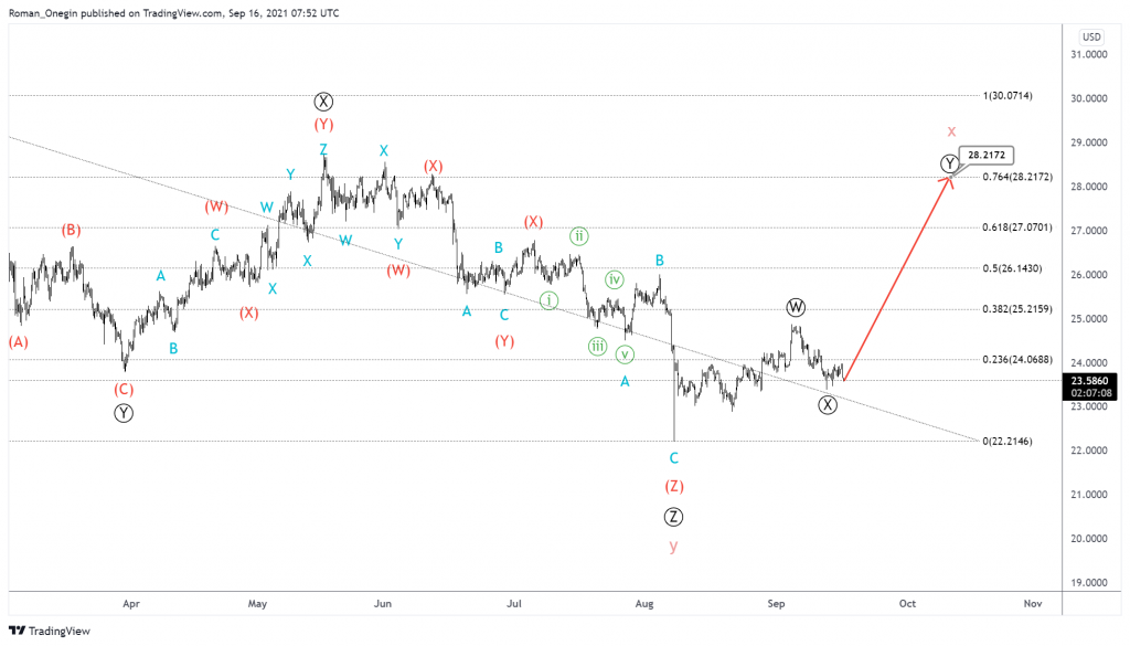 In the short term, a bullish market move is likely in the primary wave Ⓨ near the 28.21 area. At that level, wave x will be at 76.4% of cycle wave y.
