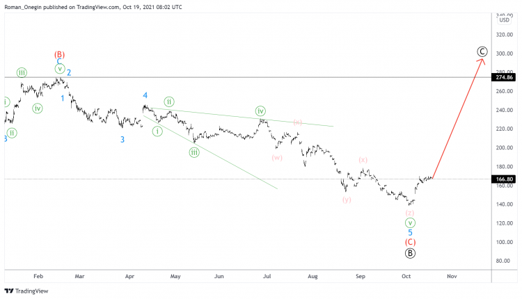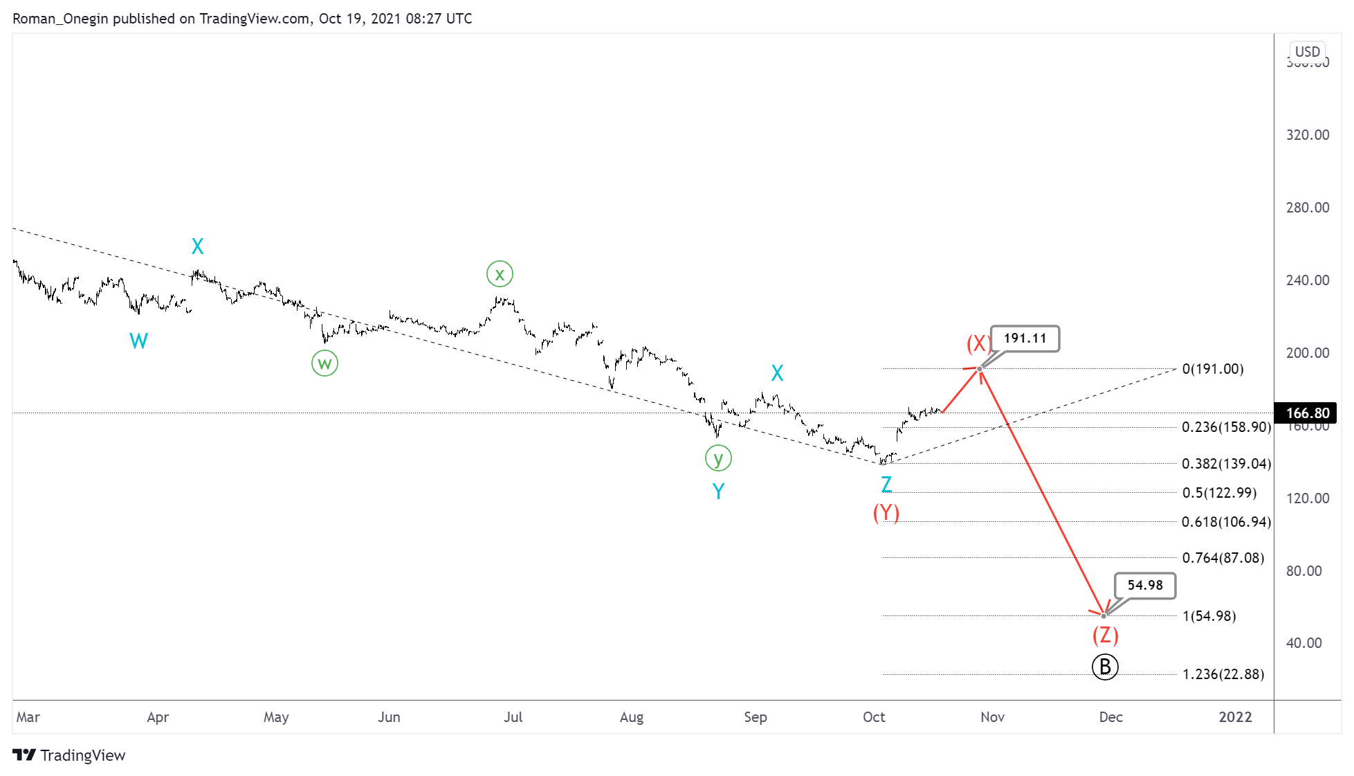 In the near future, the price could rise in the intermediate intervening wave (X) to the level of 191.11, where it will be at 38.2% of wave (Y).