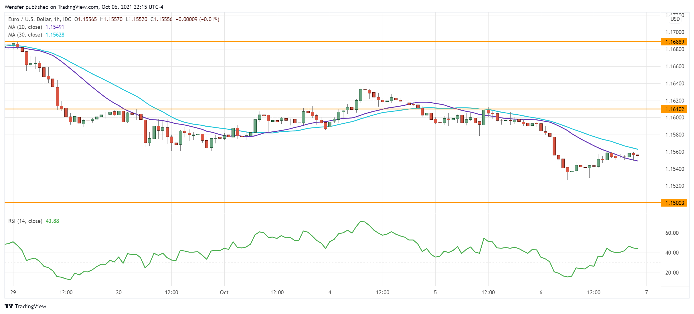 1.1610 would be the first resistance in case of a bounce. Further down, 1.1500 would be the next support.