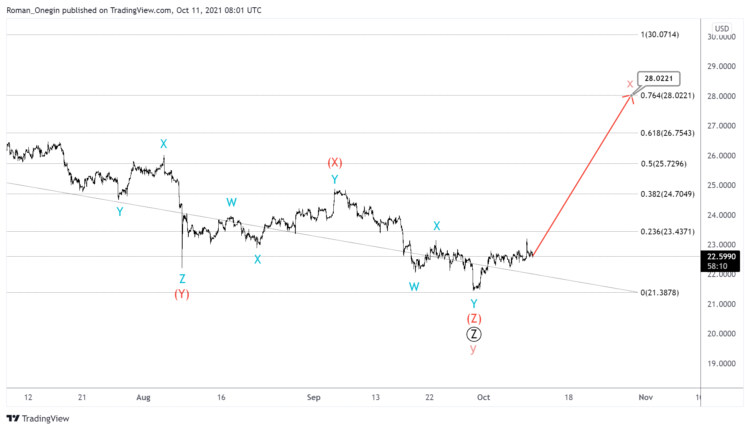 A correction trend is being built on XAGUSD. A global triple zigzag is developing, in which a cycle wave y has been forming for about six months. It took the form of a triple zigzag Ⓦ-Ⓧ-Ⓨ-Ⓧ-Ⓩ.