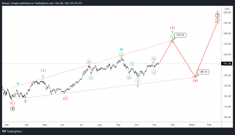 The bulls in the minor wave Y can send the market to the level of 173.33, which is on the resistance line. And then the price could fall within correction (4) to the support level of 138.14.