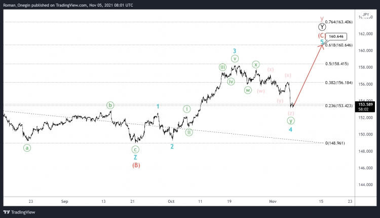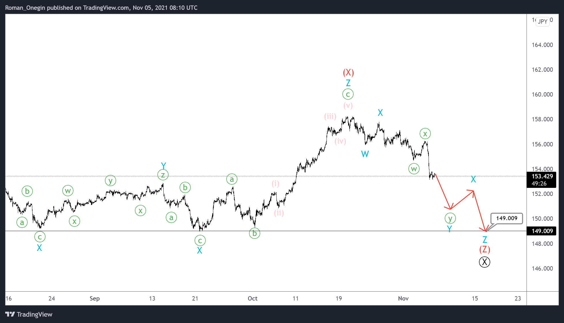 Currently, an actionary wave (Z) is forming, which can take the form of a triple zigzag W-X-Y-X-Z. Then a decline in the minor sub-waves Y-X-Z to the previous low of 149.00 is likely.