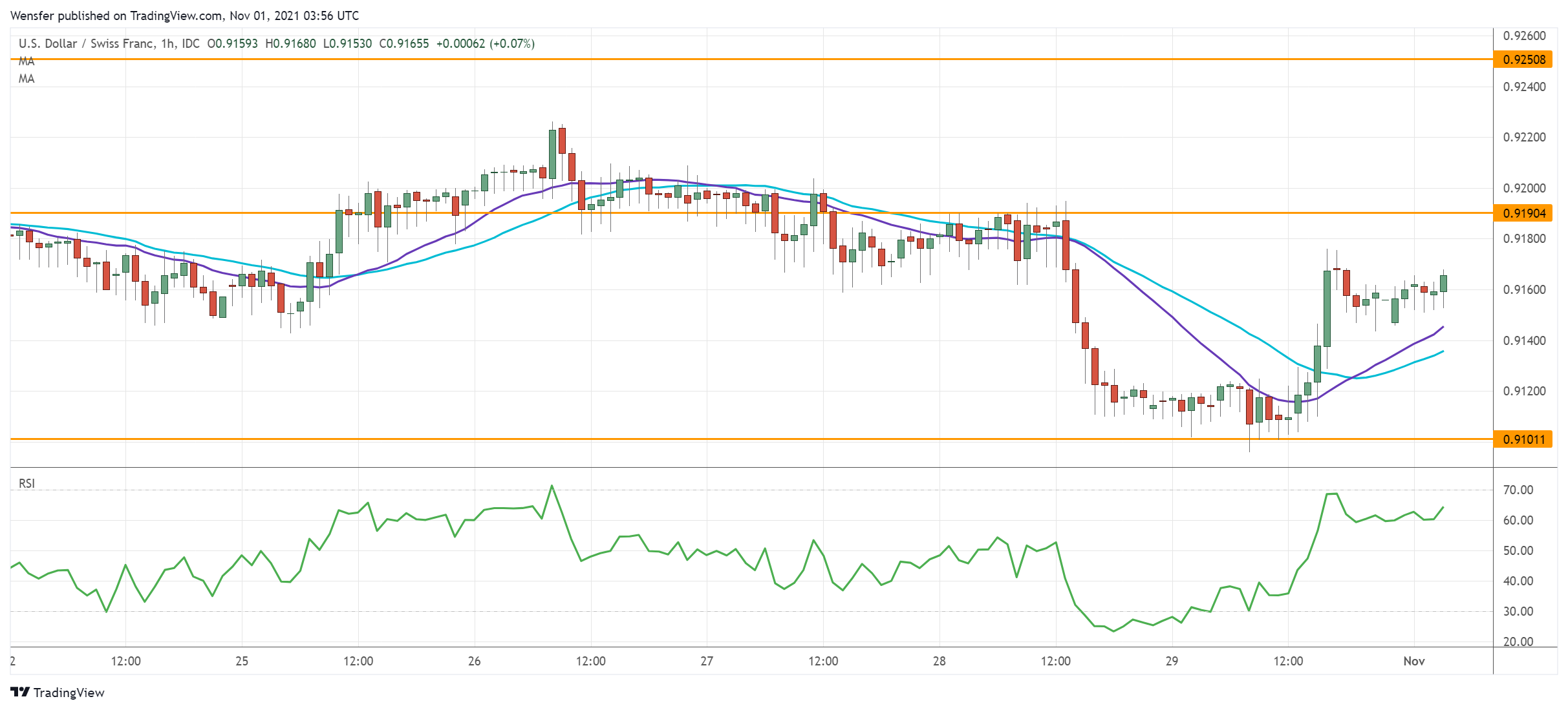 However, 0.9190 could be a challenging hurdle to lift as the bears would be eager to fade the rebound. A new round of sell-off would send the greenback to the daily support at 0.9020.